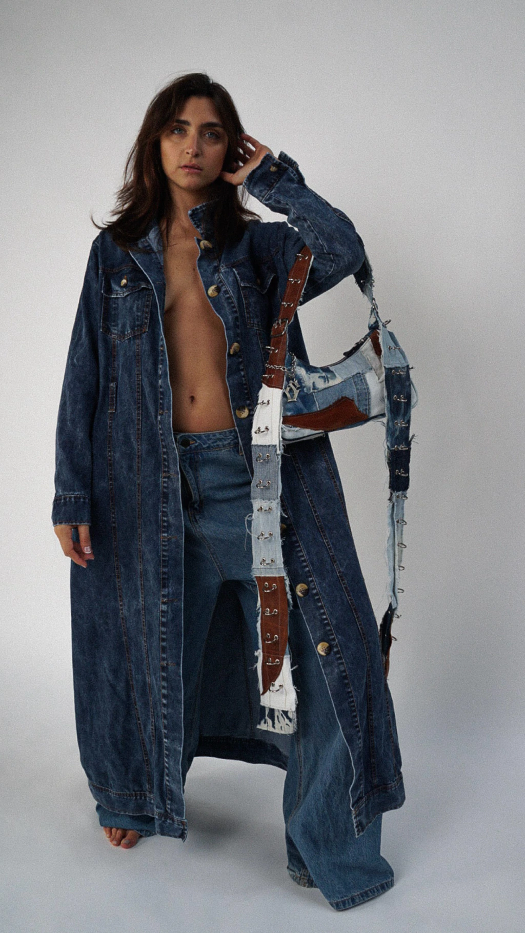 - MATERIAL : Cuero natural + Denim recuperado de retazos/piezas vintage